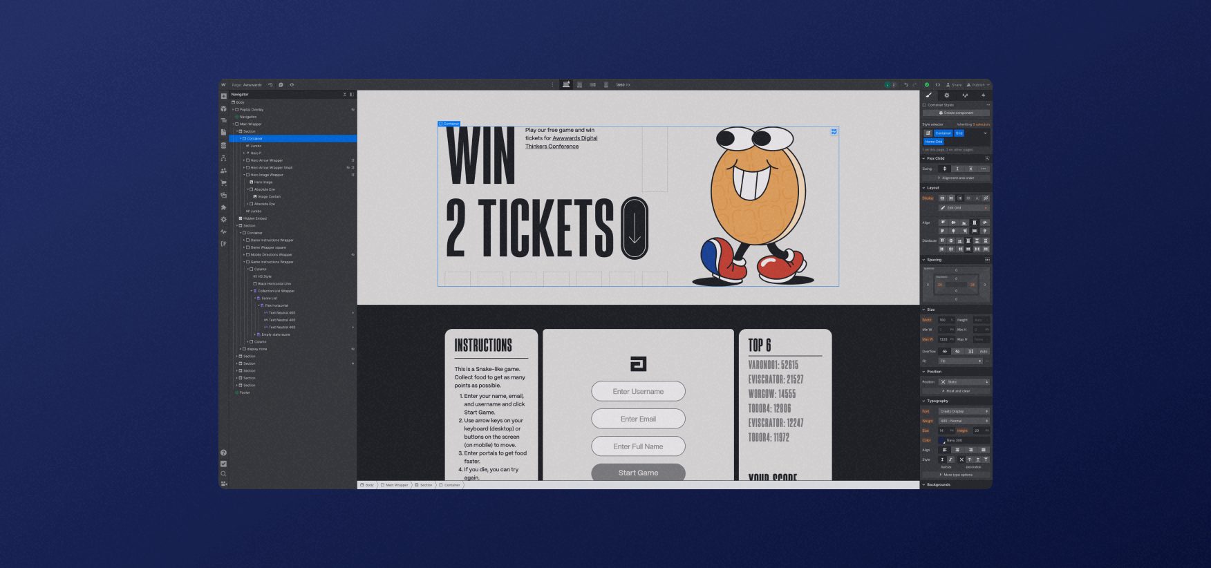 Furthermore, Webflow allows you to visually create JavaScript if you want to make complex interactions (web page animations).